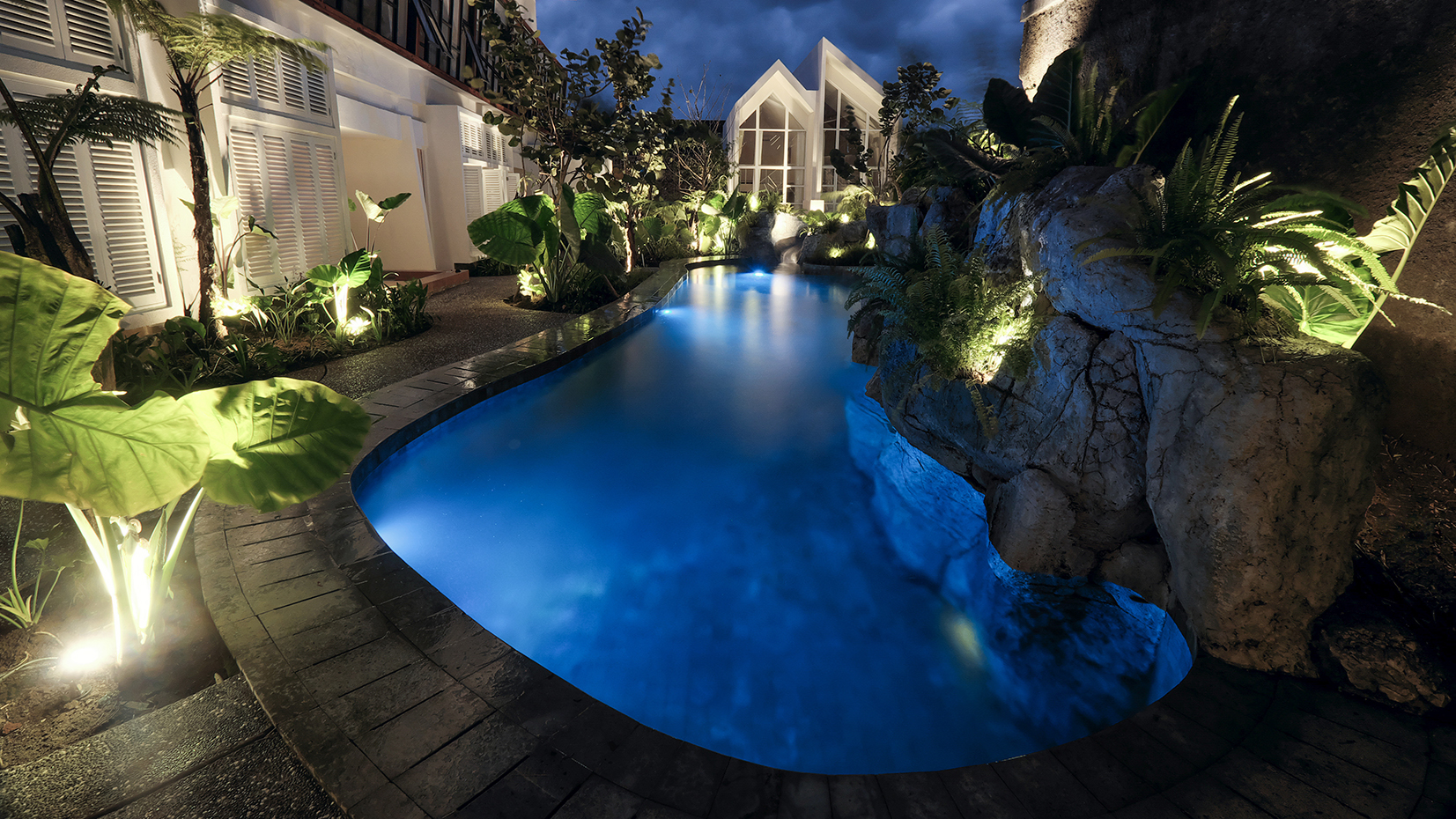 Our pool is designed to mimic the tropical beauty that is Indonesia without neglecting the shades of city life. The ‘urban oasis’ concept is strengthen with the tropical details we put in every corner of this pool area. Just by looking at it, you know how much we love nature. Around the pool, you will find small showcases of Indonesian flora. From elephant ear taro, fountainbush, to seagrape trees we try to bring as much nature in as possible.