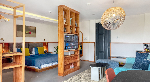 As YATS Colony is a space that circles around collaborative, co-living spirit, each room is made up of custom and environmentally-responsible design from recycled materials, hand selected opulent upholstery, tie-dye bedding handmade locally by Purana Indonesia, plush pillows throw by Semak Studios, and original artwork by Indonesia’s emerging artist, Sarkodit, all exclusive for YATS Colony.