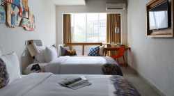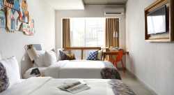 This suite is why YATS Colony is an urban boutique resort. This 36 square meter (or 390 square foot) living space offers two access to either the hallway leading to the bistro or communal lounge, and to pool. NA rooms also feature Emeco’s Alfi chair designed by Jasper Morrison and cozy window nook with direct view to pool.