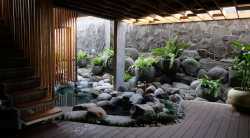 Exclusive HA suite with shared semi-private, semi-outdoor warm water soaking pool. Approximately 48 square meters (or 517 square feet), every suite includes a seating area, a working corner with Emeco's signature Navy chair, and an outdoor terrace perfect for relaxing. Accommodates a direct access to the soaking pool, a king-sized bed, plush top mattresses, hypoallergenic duvet and pillows, a sofa also functions as a daybed, mini tatami area, and a flat screen LED television with the ability to stream personal content.